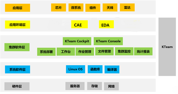 KTeam是基爾科技自主研發(fā)的高性能協同設計仿真軟件平臺,可實現設計與計算集群資源統一部署、使用、瀏覽、管理、監(jiān)控和統計等,可大幅提高仿真效率,簡化平臺管理。KTeam由應用工作臺、作業調度模塊、文件管理模塊、集群監(jiān)控模塊、資源統計模塊組成。選用KTeam及其相關服務,可以幫助用戶部署操作系統,安裝和測試集群軟件以及應用環(huán)境,基于高性能集群硬件設備,提供傳統的設計環(huán)境和高速的仿真體驗。